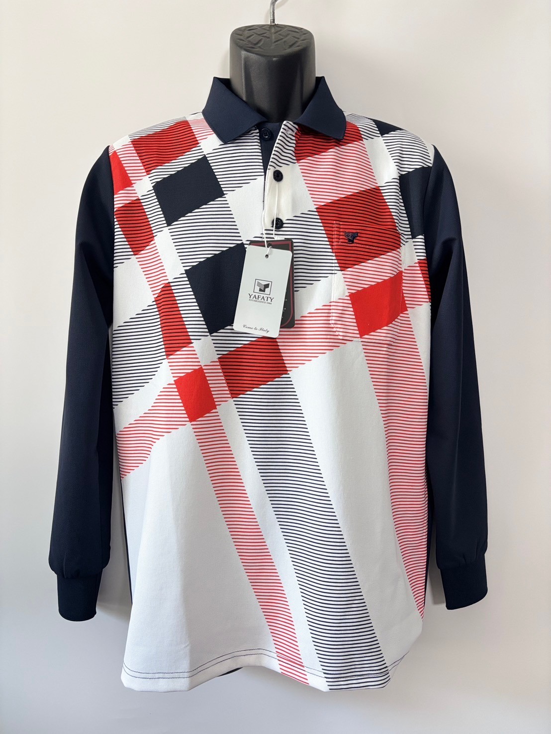 冬季 厚長袖 商務 穿搭 POLO衫 橘白 條紋相間款